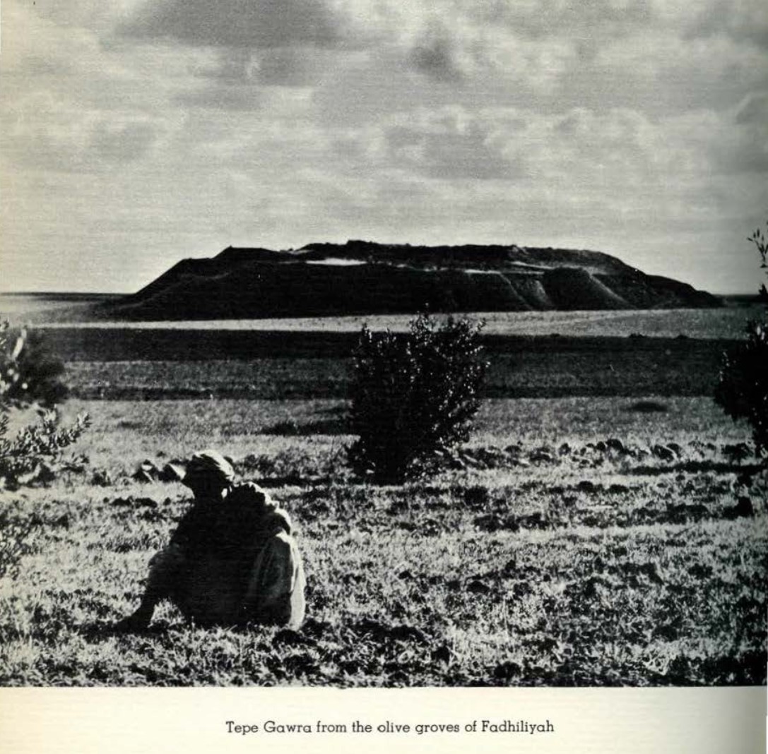تەپە گەورە دەکەوێتە باکووری ڕۆژئاوای عێراق لە نزیک شاری موسڵی مۆدێرن، و دوور نییە لە نەینەوای کۆن، لە ساڵی ١٩٣١ تا ١٩٣٨ هەڵدراوەتەوە. تا ناوەڕاستی هەزارەی دووەمی پێش زایین، و ناوەکەی داوە بە سەردەمی گەورە کە لە نیوان ٣٥٠٠-٢٩٠٠ ساڵی پێش زاییندا بووە. لە ماوەی هەزارەی چوارەمدا پێدەچێت شوێنەکە ناوەندی ڕێوڕەسمی و کارگێڕی سیاسەتێکی بچووک و تا ڕادەیەک پەراوێزیی بووبێت لە ناوچەی پیدمۆنت لە باکووری عێراقی ئێستا. هەروەها بە پلەی جیاواز لە ئاستێکەوە بۆ ئاستێکی تر، دانیشتوانی شوێنەکە خەریکی بەرهەمهێنانی پیشەسازی بوون، لەوانە دروستکردنی قوماش، دروستکردنی کۆپە، کاری دار، نەخشاندنی ئێسک/بەرد و مۆر، دروستکردنی ئامێری بەردین. ڕەنگە ئەو شوێنە کۆمپانیایەکی بچووکیان شوێنی بازاڕی ناوەندی بووبێت.